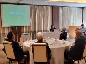 民間企業からジョージア大使になった氏は古代の歴史、宗教、地政学的には大国に周囲を囲まれ狭間にある多民族の集まりの苦悩、独立〈91年〉後の歴代大統領の異なる政権運営、隣国ウクライナやロシアとの関係、複雑な国民性から起こるジレンマなどを写真やデータを入れてドラマチックな話を披露してくれた。伝統的なワインの発酵、貯蔵に使用されるクヴェヴリ(土器)の事、中古車の再輸出が大きなウエイトを占める産業などにも言及され、まだまだ知らないことの多さを痛感した示唆に富んだ貴重な講演であった。なお会員専用の講演記録ページに氏の講演資料が掲載されています。