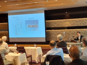 トランプ米大統領が高関税政策などで世界に混乱をまき散らしているのは米国の製造業復活と氏は俯瞰する。また今回のトランプ関税が1971年のニクソン・ショックと重ねた松尾文夫氏の分析等も氏があらゆる手段で集めた客観的事実に基づいて論評していることやトランプ劇場のキャスティングについてミレニアルズ(40歳前後)の側近スタッフの顔ぶれになっていることに言及していることなど、新聞やテレビの今後のニュースを観る上での参考になった。メデイアだけでは判断できないことの多さを痛感した時機を得た貴重な講演であった。講演資料は会員ページにが掲載されています。