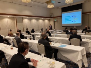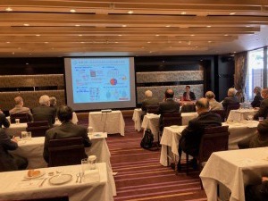 バイオの研究では第一人者である氏からヒトの体の中の細菌の遺伝子から従来は不可能だった根本治療の実現化、バイオプロセスによる汎用化学品の高効率生産化、工業分野での持続可能な燃料、薬品等の生産化についてわかりやすい説明をいただいた。本格的なバイオエコノミー時代の到来の中、日本は大変遅れをとっていたが、神戸大學では先端バイオ工学センターなど工学・医学・農学分野で連携してバイオファクトリーを開発、最近では政財界のトップも視察に来ている。日本のバイオものづくりによるカーボンニュートラルに向けてさらに研究を続けていきたいとの近藤氏のエネルギッシュな講演であった。