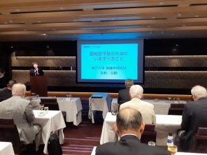 前段では最近開発された認知症治療薬レカネマブの効果とリスク、脳内老人斑発生のプロセスとその形状変化を医学的見地からグラフや図解で分かりやく解説された。後段では認知症はひとたび発症すると元に戻すことが難しいこと、認知症予防のために今すべきことは糖尿病など血管危険因子の治療、禁煙、抗酸化作用の食事の摂取、二重課題運動の励行と質の高い睡眠と共にコミュニケーションを日常とることの大切さを教えてくれた。特に印象に残ったのはカレーの成分「クルクミン」に脳の老人斑を減少する効果があること、伝統的和食や地中海食も認知症予防に役立つことであった。又、音楽療法が認知症機能の改善に効果的であることも研究によって明らかになってきたとの事、心に残る氏の講演であった。
