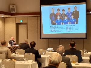 氏は一橋大学卓球部に所属パリ五輪では現地にJITAの会長として滞在、男子はメダルに届かなかったが女子団体銀メダル、個人では早田ひな選手が銅メダル獲得の快挙、現地の盛り上がりなどを報告された。