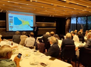 民間企業からジョージア大使になった氏は古代の歴史、宗教、地政学的には大国に周囲を囲まれ狭間にある多民族の集まりの苦悩、独立〈91年〉後の歴代大統領の異なる政権運営、隣国ウクライナやロシアとの関係、複雑な国民性から起こるジレンマなどを写真やデータを入れてドラマチックな話を披露してくれた。伝統的なワインの発酵、貯蔵に使用されるクヴェヴリ(土器)の事、中古車の再輸出が大きなウエイトを占める産業などにも言及され、まだまだ知らないことの多さを痛感した示唆に富んだ貴重な講演であった。なお会員専用の講演記録ページに氏の講演資料が掲載されています。