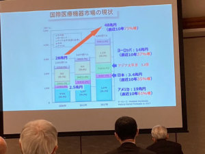 日本の医療現場では手術などに使用する治療機器のほとんどが海外からの輸入機器に依存している中で先生は地元企業、行政などと連携して、次世代医療を担う手術支援ロボットシステムを構築し、近未来の医療器械を開発する有望な拠点としての神戸大学を目指していることを熱弁していただいた。