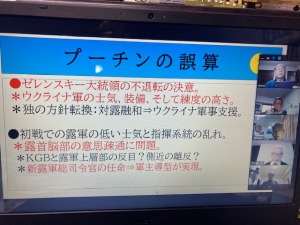 ロシアのウクライナ侵攻について、テレビ等マスコミでは語られない本質に迫る討議であった。